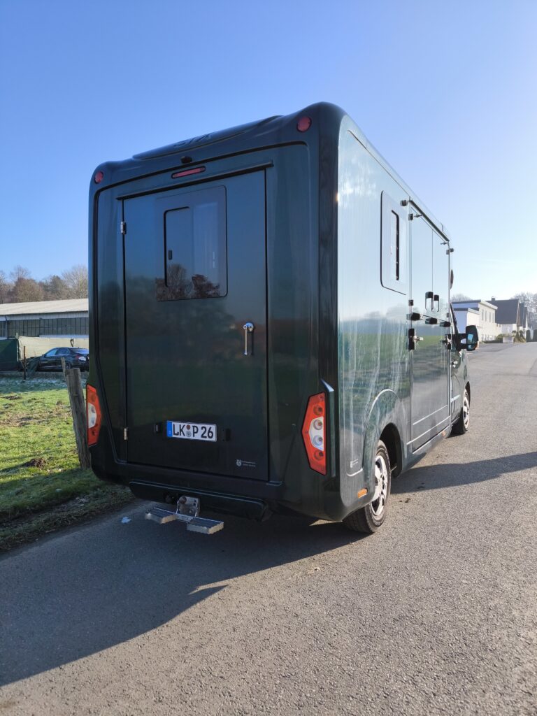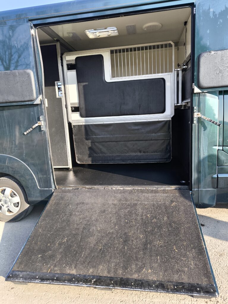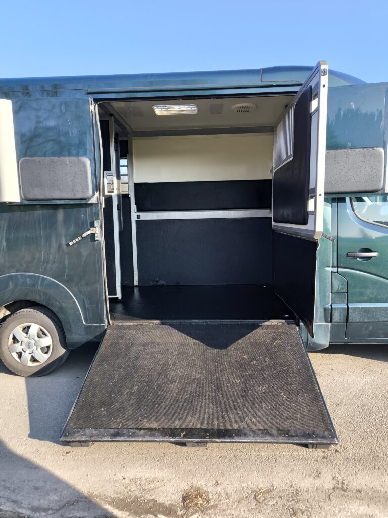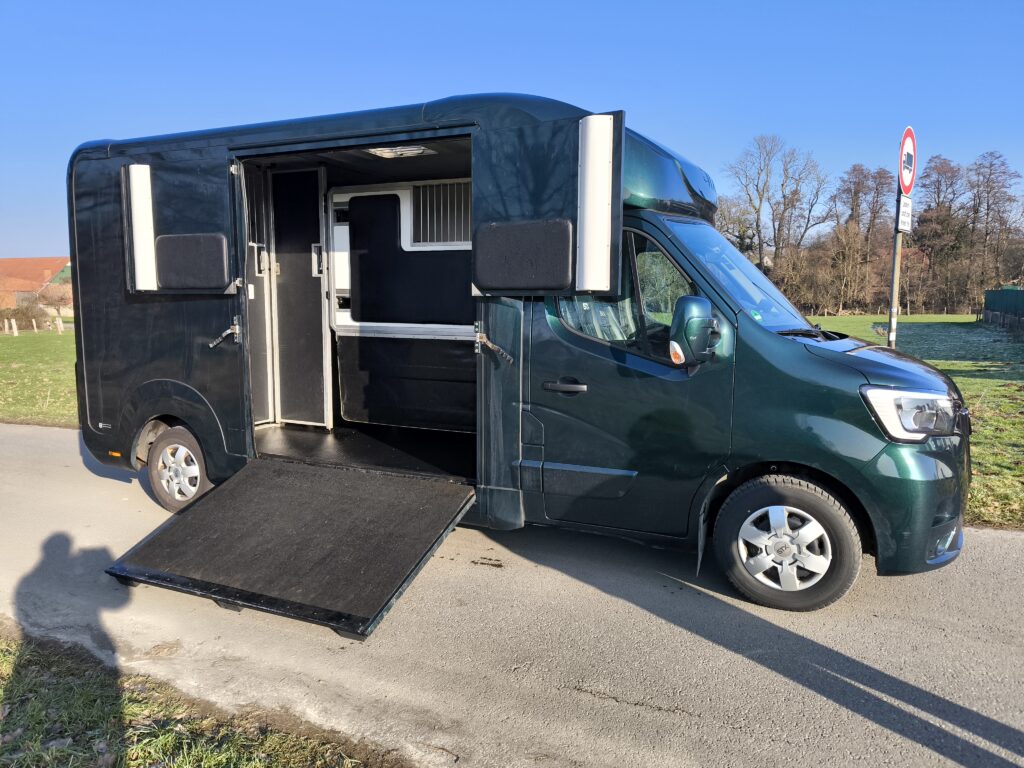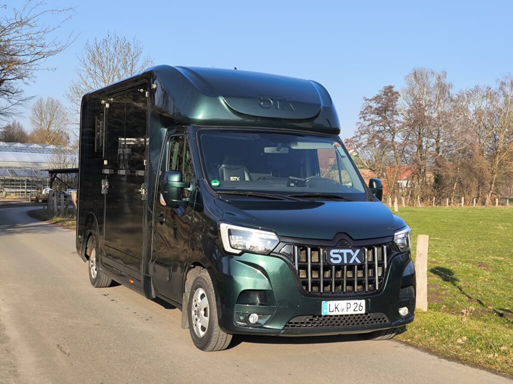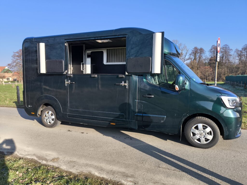Wir fahren mit einem 3,5t Renault Master Pferdetransporter mit STX Aufbau für 2 Pferde.